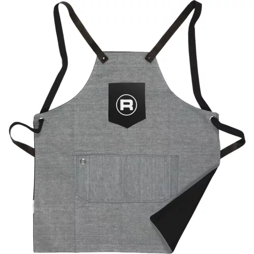 tartós anyagból készült barista kötény | megfordítható | fekete bőrszíjak | alsó szélesség 680 mm | felső szélesség 210 mm | magasság 740 mm | eredeti ROCKET ESPRESSO csomagolásban eladó