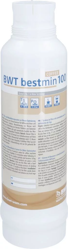 A BWT bestmin COFFEE 100 ideális választás olyan területeken, ahol a csapvíz természetesen lágy, vagy fordított ozmózis (RO) rendszerek utáni visszasózásra van szükség. A patron használatával állandó és kiváló vízminőséget biztosíthatsz, ami elengedhetetlen a professzionális minőségű kávé elkészítéséhez, miközben a kávégépedet is megvéded a nemkívánatos részecskéktől.