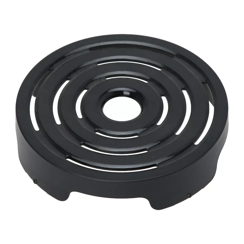 A rács kiváló minőségű ABS műanyagból készült, amely nemcsak a hőt bírja jól, hanem a mindennapi használat során fellépő mechanikai hatásoknak is ellenáll. A koncentrikus körökből álló dizájn nemcsak esztétikus, hanem funkcionális is: hatékonyan vezeti el a felesleges vízcseppeket a gyűjtőtálcába, így a kávéfőző környéke mindig tiszta marad. A fekete szín tökéletesen harmonizál a készülék eredeti megjelenésével.