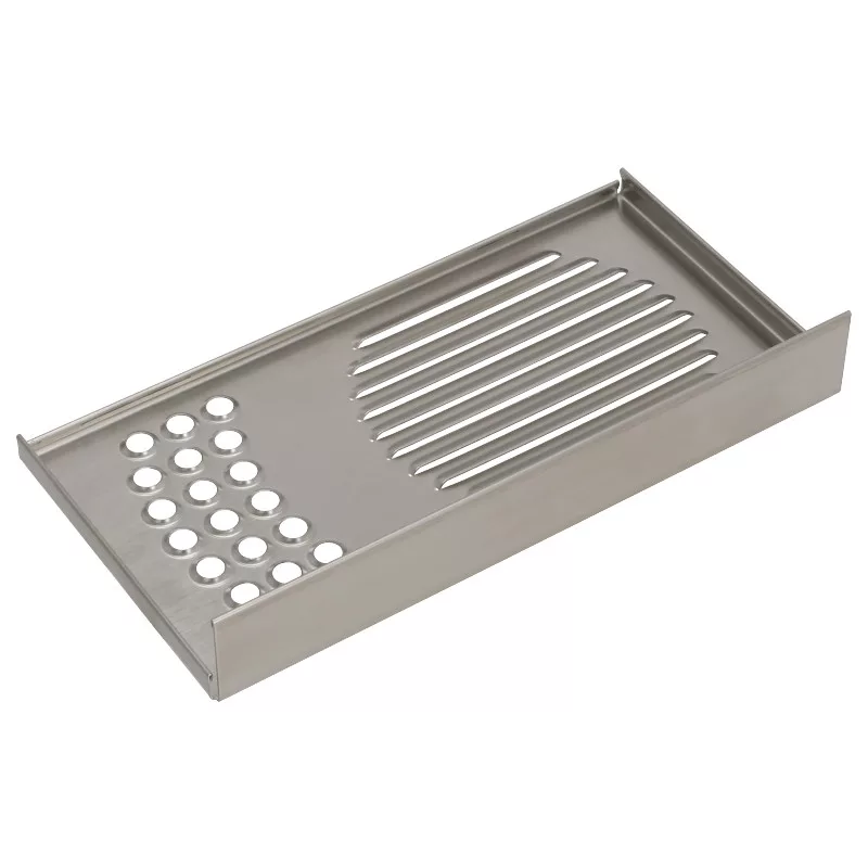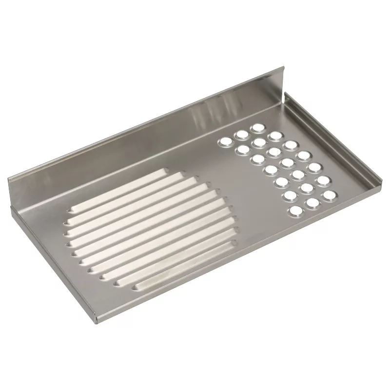 Előtt található csepptálca rács, amely rozsdamentes acélból készült.