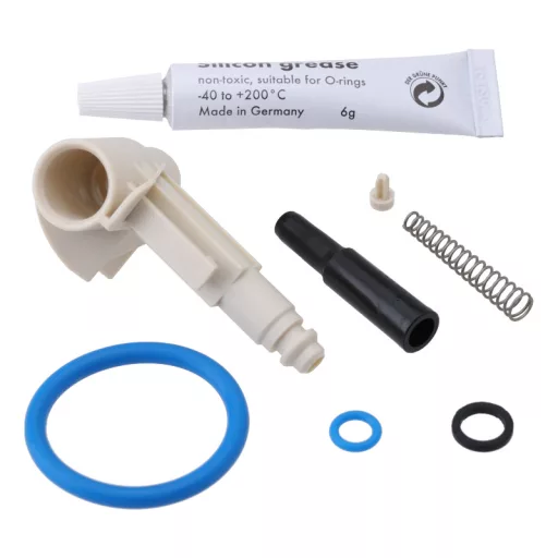 A készletben található fehér beömlőcsonk és a krémesítő szelep alkatrészei (rugó, stift, O-gyűrű) biztosítják, hogy a kávé újra a megfelelő nyomáson és tökéletes krémréteggel készüljön el. A mellékelt 6 grammos élelmiszeripari szilikonzsírral gondoskodhatsz a mechanikus alkatrészek sima, akadásmentes mozgásáról, ami kíméli a motort és halkabb működést eredményez.
