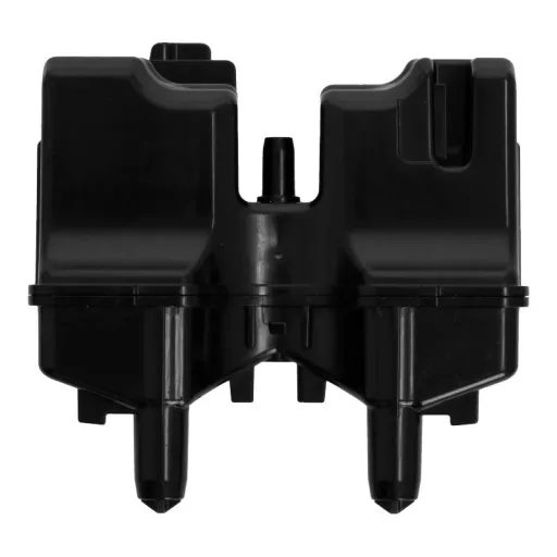 A kifolyóelosztó élelmiszeripari minőségű fekete műanyagból készült, elöl található a kifolyócsúszkában.