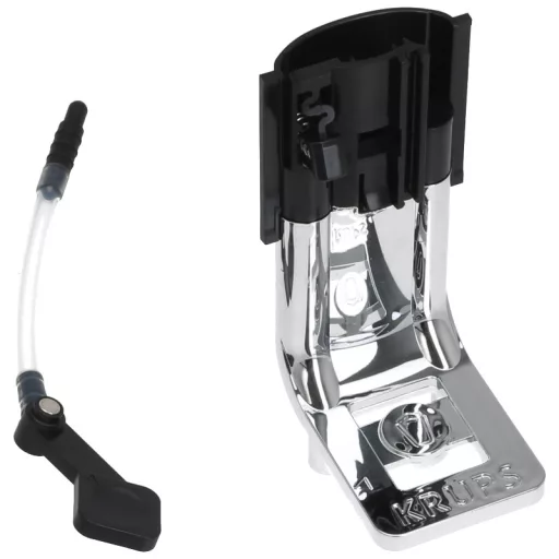 Kávékifolyó csúszka csővel és csatlakozóval a tejtartályhoz. Az alkatrész-készlet illeszkedik a lenti kávéfőzőkhöz.