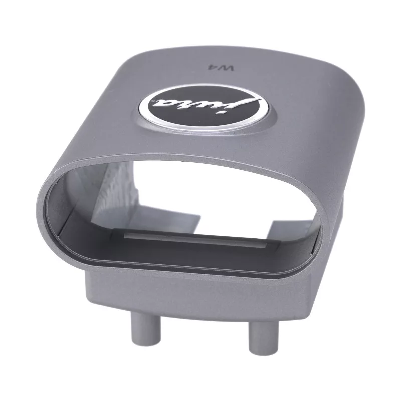 Sötét inox színű cserélhető burkolat az állítható magasságú ital kifolyó elülső részén. Tartalma: 1x kifolyó burkolat a képen látható módon.