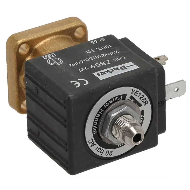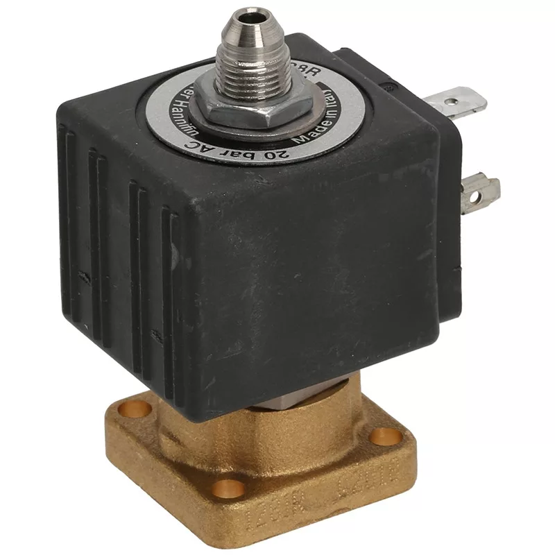 A háromutas mágnesszelep maximálisan 10 bar nyomással, tekercsel és tartóval van ellátva, és az eszpresszógépéhez illik.