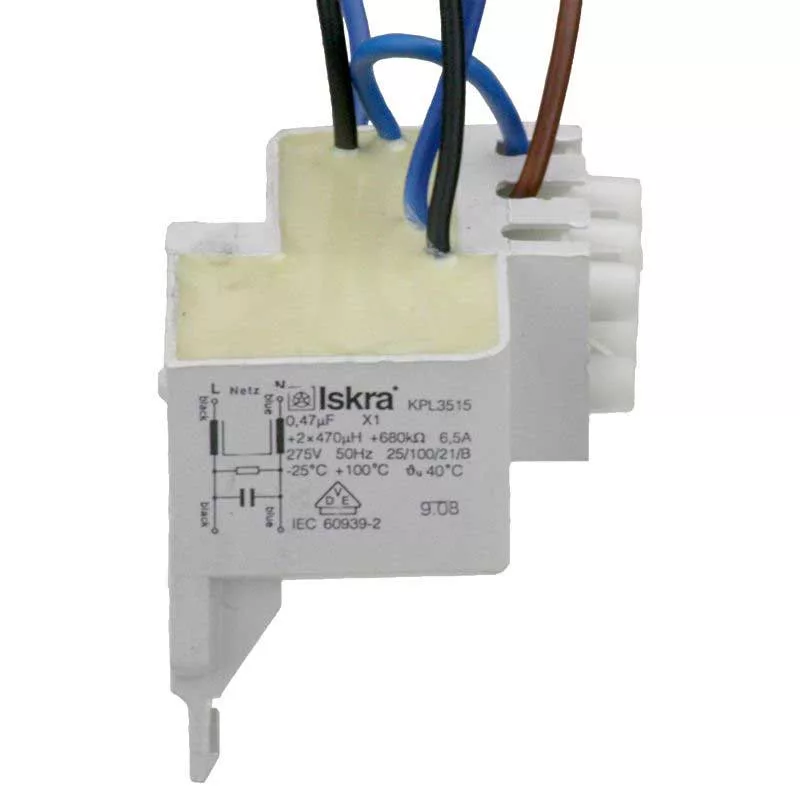 Az elnyomó szűrő kondenzátorral a hátsó bal oldalon található. Ehhez csatlakozik a hálózati kábel is. Az elnyomó szűrő teljes kábelekkel és csatlakozókkal érkezik.