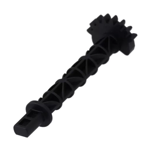 Fekete műanyag tengely fogaskoszorúval az őrlési fokozat beállításához. Tartozékok: 1 db tengely őrlési fokozat beállításhoz, ahogy a képen látható.