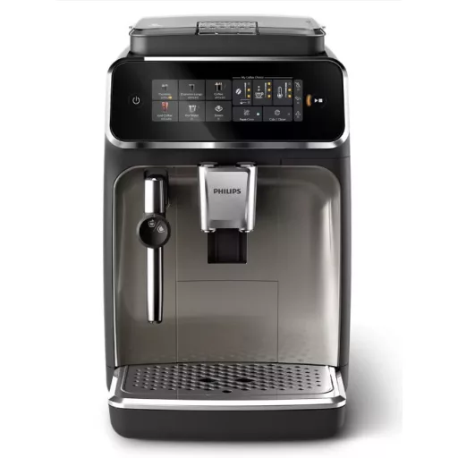 Indítsd a napot a frissen őrölt kávé ellenállhatatlan illatával! A Philips Series 3300 automata kávégép elhozza otthonodba a barista minőségű kávézás élményét. Az intuitív, színes ikonokkal ellátott érintőkijelző segítségével egyetlen érintéssel választhatsz 5 különböző ital közül, legyen szó egy intenzív eszpresszóról, egy hosszú kávéról vagy akár egy frissítő jeges kávéról.