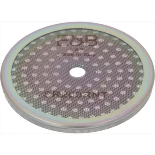 tapadásmentes NANOQUARTZ bevonat | növeli a korrózióval szembeni ellenállást | és a kémiai reakcióval szembeni ellenállást | középső lyuk 6 mm - 121 lyuk ø 2.2 mm | Aisi 304 acél - élelmiszer-biztonsági tanúsítvánnyal | fotógravírozott membrán 200 ļm megerősített modell | alkalmas NUOVA SIMONELLI - RANCILIO gépekhez | EAN kód 0806891050519