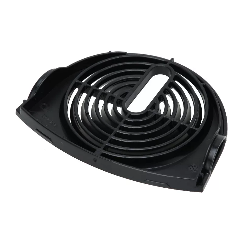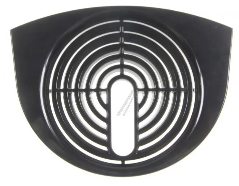 Fekete műanyag rács a csepegtetőtálca elülső részén.