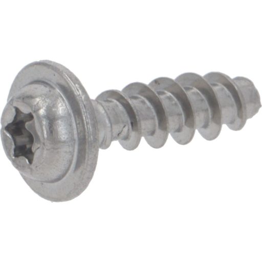 A csavar anyaga kiváló minőségű, korrózióálló rozsdamentes acél (Inox), amely hosszú élettartamot biztosít még a konyhai párás környezetben is. A speciális TCBR (karimás, domború) fej nagyobb felfekvő felületet nyújt, ami egyenletesen osztja el a nyomást, és megakadályozza a műanyag burkolat sérülését. A T10 Torx behajtás pedig stabil és csúszásmentes csavarozást tesz lehetővé.
