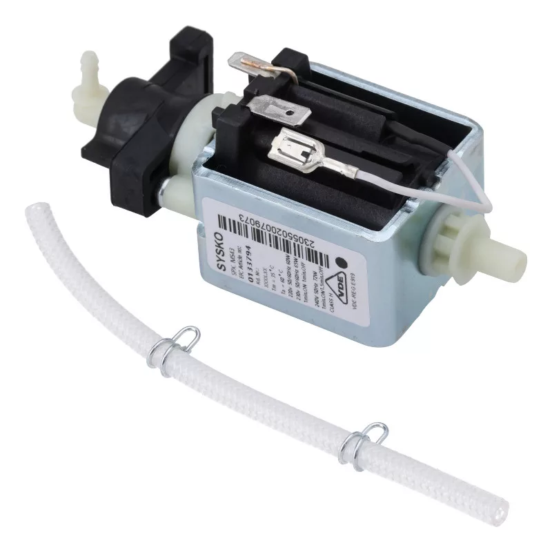 A Sysko SPX M543 pumpa teljesen összeszerelve, tartóval, érzékelővel, csőcsatlakozóval és textilcsővel (L= 140 mm) kerül szállításra.