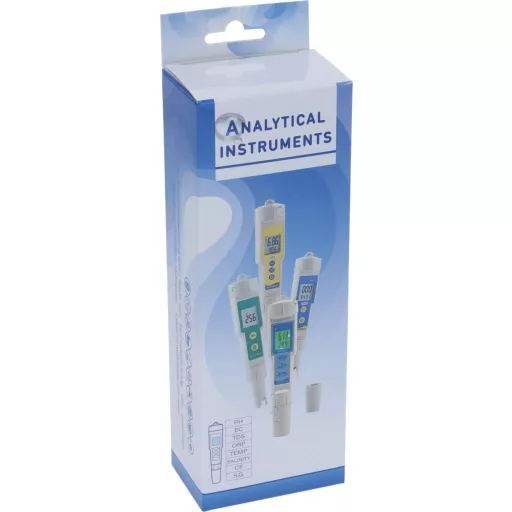 used to monitor water quality | measures PH, EC, TDS and TEMPERATURE | Large LCD screen to display the result | including instruction manual, 3 batteries | and 3 powder PH solutions 250ml: | PH 4.01 / PH 6.86 / PH 9.18 | measuring ranges: | PH: 0-14 PH | TEMPERATURE: 0-50°C / 32-122°F | TDS: 0-1999 ppm / 0-19.99 ppt | EC: 0-1999 uS/cm / 0-19.99 mS/cm | Dimensions: 188×35×35 mm | WATERPROOF