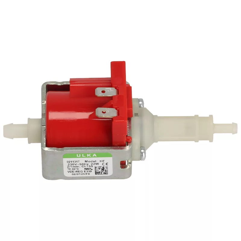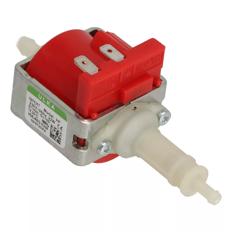 Ez a kis Ulka pumpa 230V csatlakozási feszültséggel és 22W teljesítménnyel rendelkezik, és csőcsatlakozóval kerül szállításra.