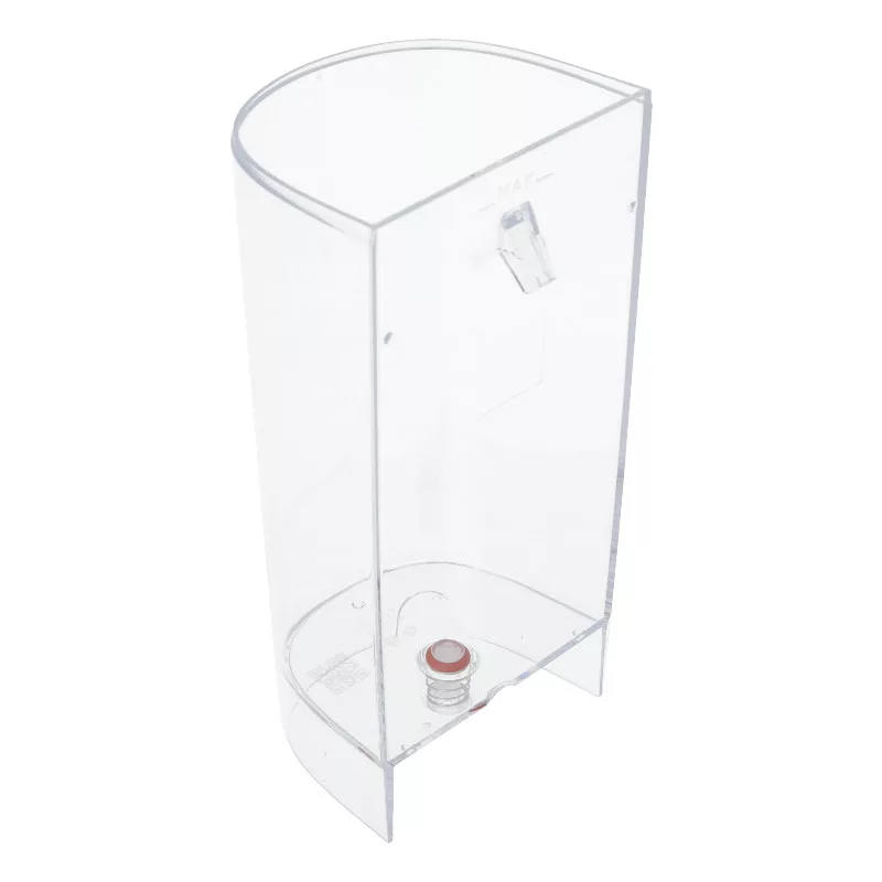 Átlátszó műanyag víztartály kifolyószeleppel.