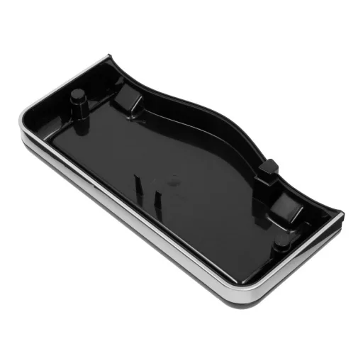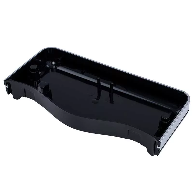 Fekete műanyagból készült csepegtetőtálca rozsdamentes acél borítással.