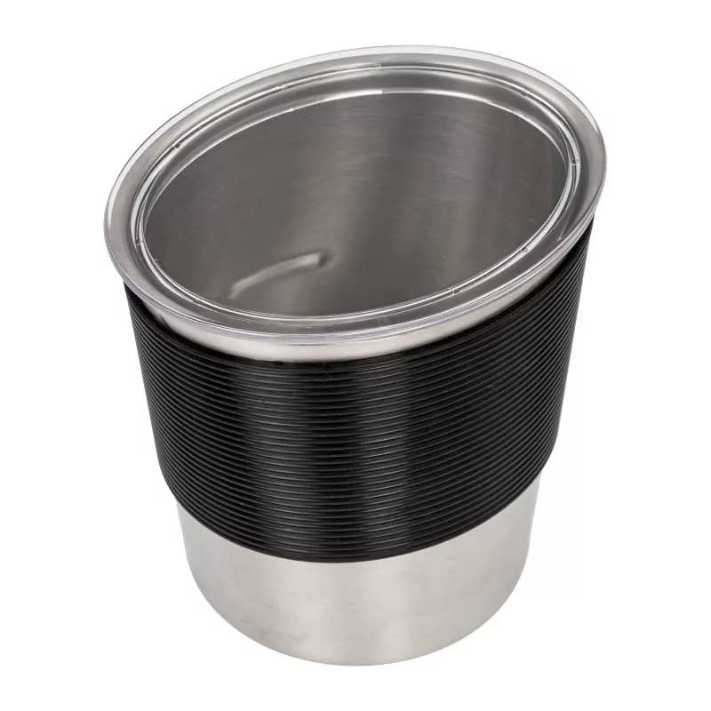 Teljes rozsdamentes acél tejtartály fedéllel és habrotorral.