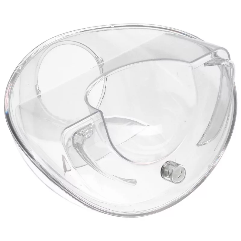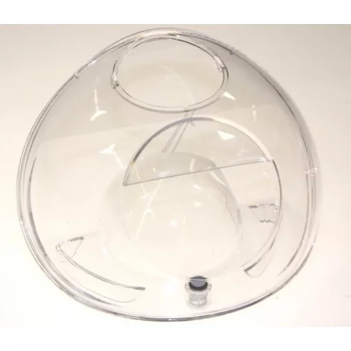 Átlátszó műanyagból készült víztartály, amely kimeneti szeleppel van ellátva.
