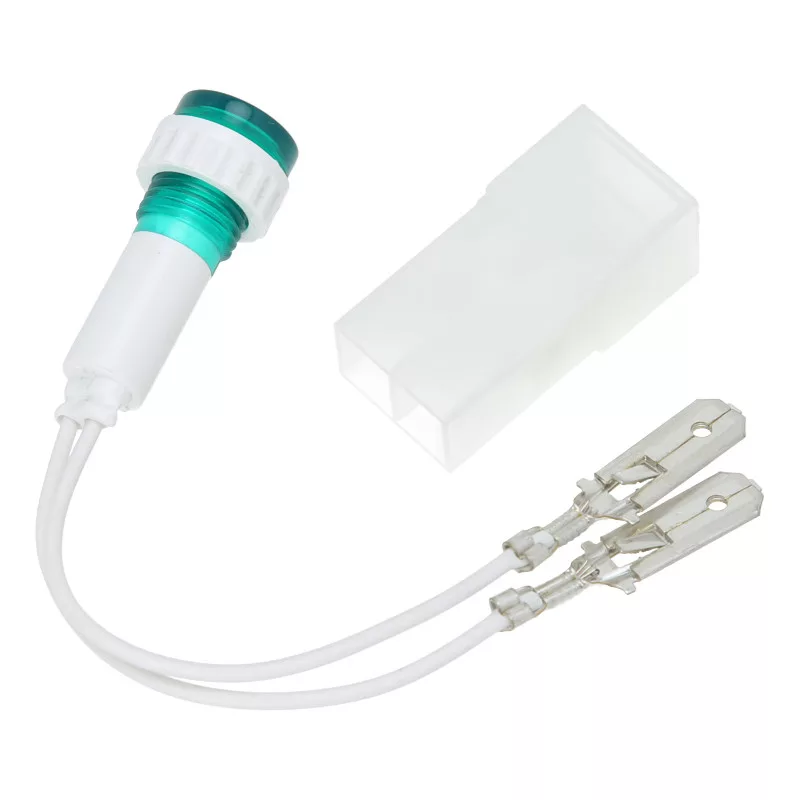 Ez a zöld LED kontroll lámpa a be- és kikapcsoló gombon található két 65 mm hosszú csatlakozókábellel érkezik.