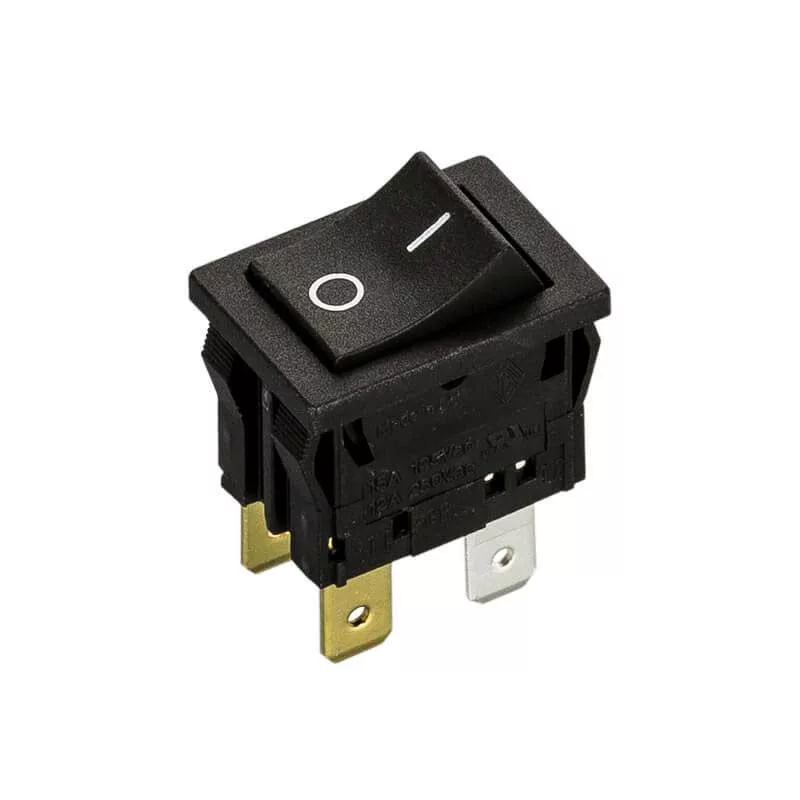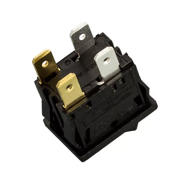 Főkapcsoló négy csatlakozással. Beépítési méret: 13x20 mm.
