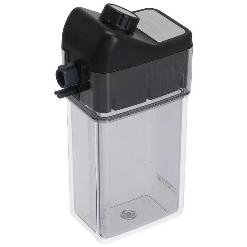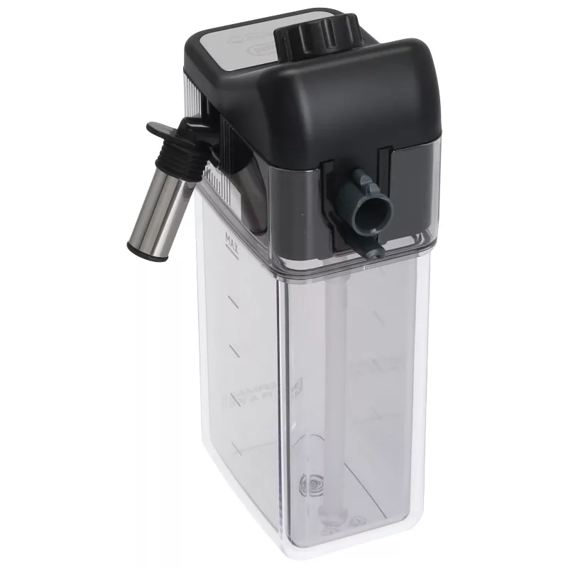 Teljes tejkancsó tejtartállyal, fedéllel, beleértve a habosítót, szívócsövet a tejhez és kifolyócsövet.