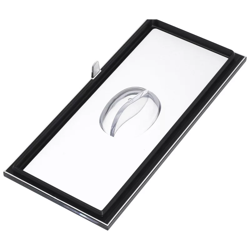 Bohártartó fedél. Az alkatrész átlátszó, fekete széllel, és egyszerűen ráhelyezhető a tartályra.