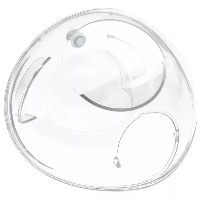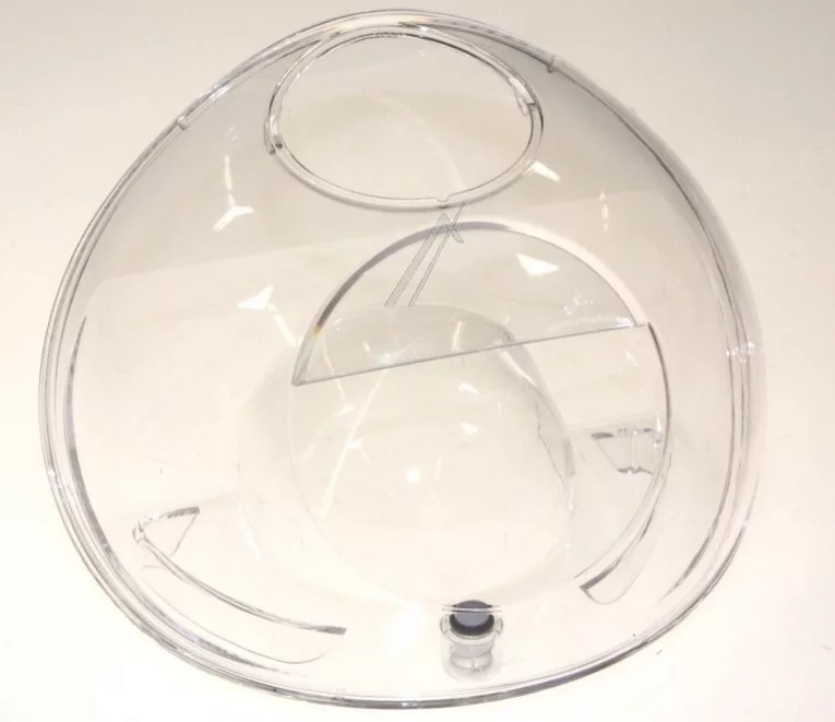Átlátszó műanyagból készült víztartály, amely kimeneti szeleppel van ellátva.