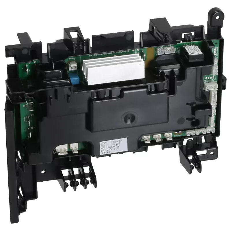 Vezérlő és teljesítmény elektronika műanyag házban. Ezen az elektronikai modulon keresztül vezérelhetők és kapcsolhatók a kávéfőző minden funkciói.